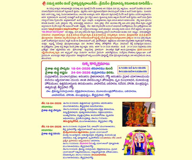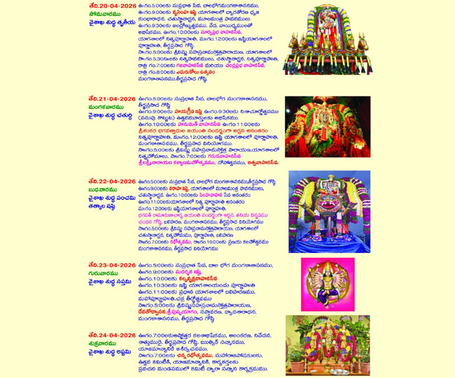 Vaisakh Shuddha Padyami 28-4-2025 Monday 9:00 AM Utsavam begins with a dip followed by Mangalasasana and consumption of Tirtha Prasadam.
